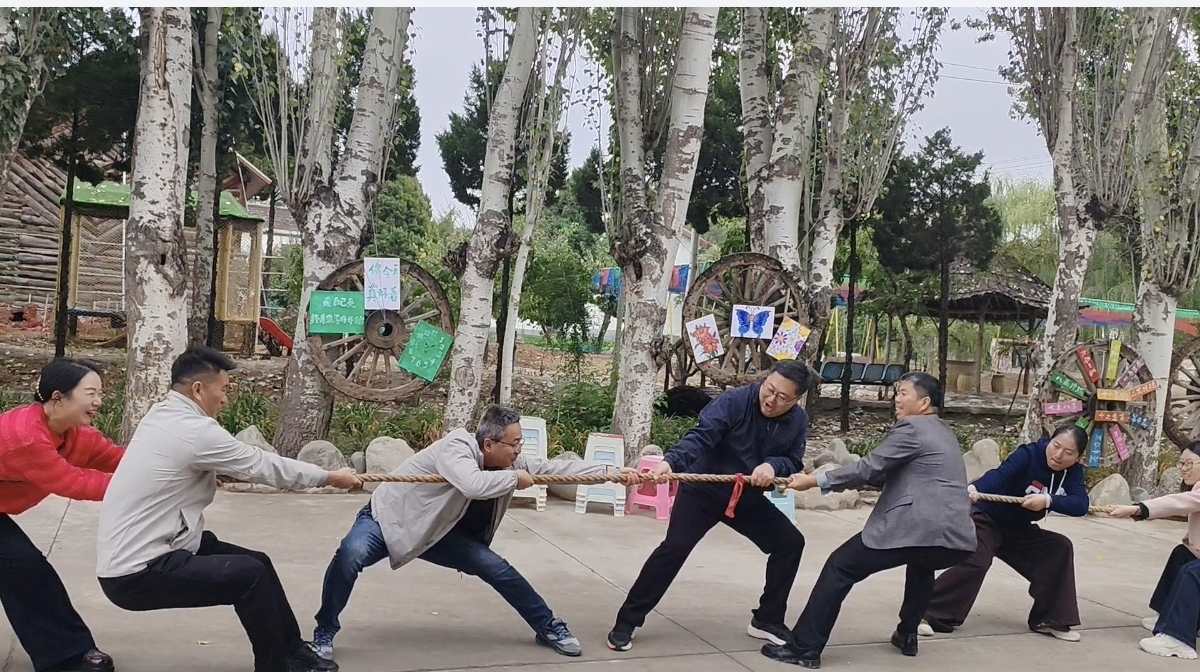 庄园内笼着轻雾,鸡冠花垂着晶亮水珠,葡萄藤叶碧得透亮,池塘漾开一圈圈软润的涟漪。老师们暂时卸下工作的忙碌,或漫步于庄园内步道,欣赏秋日里的自然景致;或三五成群围坐交流,分享工作中的心得与生活里的趣事。而现场最热闹的环节,当属抢凳子与拔河两大趣味游戏,瞬间点燃了所有人的热情。