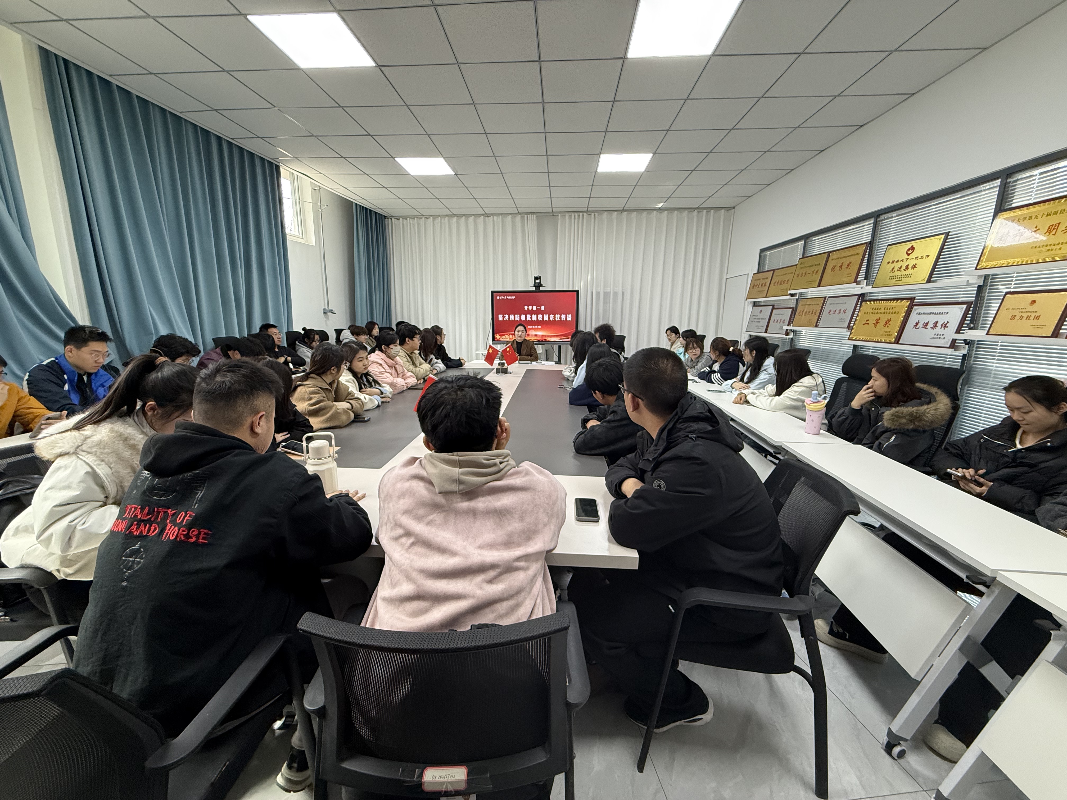 在学业发展与规划指导方面,各年级辅导员立足学生实际需求,对上学期整体成绩、四六级通过率等关键数据进行全面分析,客观总结学习成效与不足。同时结合年级特点,针对性开展学业规划指导,帮助学生梳理学习目标、优化学习方法、明确努力方向,引导大家以更清晰的思路、更饱满的状态投入新学期学习生活。