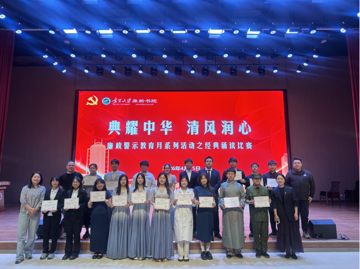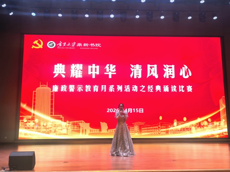 为深入学习贯彻习近平文化思想,扎实推进廉政警示教育月工作走深走实,深挖中华优秀传统文化中的清廉内核,以文育廉、以读正心,4月15日,鼎新书院“典耀中华 清风润心”经典诵读比赛圆满落幕。本次比赛面向书院全体在校学生,经层层初赛筛选,优秀选手晋级院级决赛,以声传情、以文润心、以廉铸魂,在经典诵读中涵养清风正气,共赴传统文化与廉洁精神相融共生的经典之约。