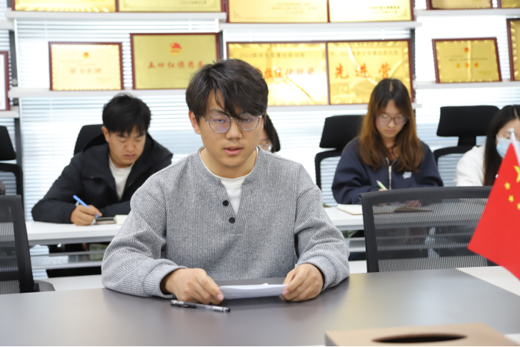 学习结束后,学生党员代表机械工程本科生党支部王学智、材料与新能源研究生党支部牛家宝结合理论学习与自身成长、志愿服务、学风建设等实际交流发言,分享感悟体会,展现青年党员担当精神。