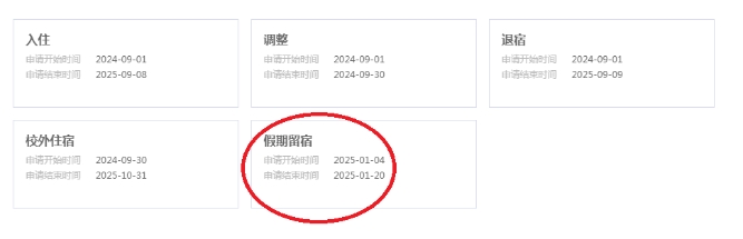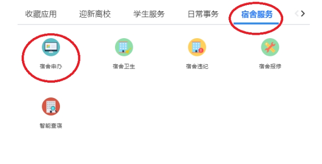 3.学生申请假期留校流程。在“学工系统”—“宿舍服务”中点击“宿舍申办”,然后按照要求进行填写,本科生需要辅导员审核,研究生上传导师同意留宿相关材料后,自动审核通过。宿管人员后期会依据留宿申请数据进行排查,请留校同学及时填写申请,并上传附件1-3。