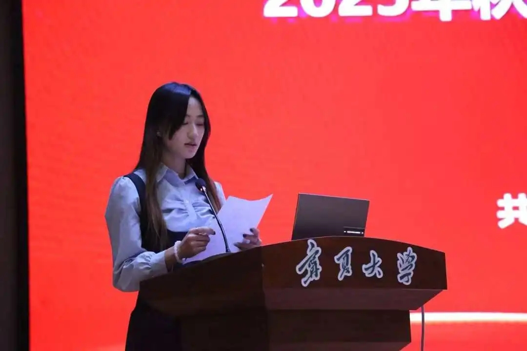 新征程,新篇章。2025年11月6日中午,宁夏大学鼎新书院在笃行楼报告厅隆重举行第三期“青年马克思主义者培养工程”暨2025年秋季学期入团积极分子培训班开班仪式。本次仪式旨在深入学习贯彻习近平总书记关于青年工作的重要思想,筑牢青年学子信仰之基。开班仪式由组织部负责人杨昊喆主持,书院党委副书记马丽蓉、团委负责人王凤霞出席会议。青马班学员与入团积极分子共计310人参加,共同开启了新一阶段的学习征程。