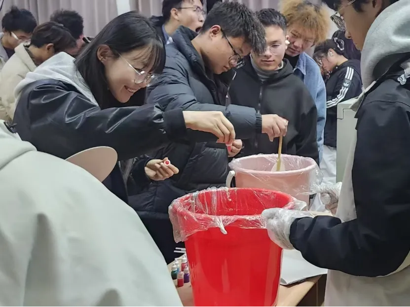 围绕漆料筛选、色漆调配、扇面打底、纹样绘制等非遗技艺的核心关键工序,宣传与对外联络部的同学进行了耐心细致的拆分讲解。不仅系统梳理了各环节的操作要点,助力大家扎实筑牢漆艺基础操作,更针对性点拨了实践操作中可能遇到的各类难点,为后续同学们动手实践扫清障碍、保驾护航。