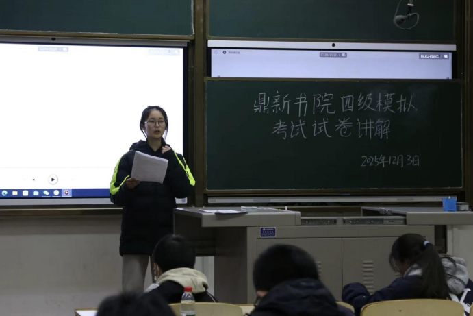 四六级考试日益临近,为切实解决同学们备考过程中面临的单词记忆、听力理解、写作表达等难题,12月3日晚,鼎新书院学风与就业服务部于文萃一教131室、212室成功举办四六级帮扶授课活动,为备考学子送上实用“通关秘籍”。