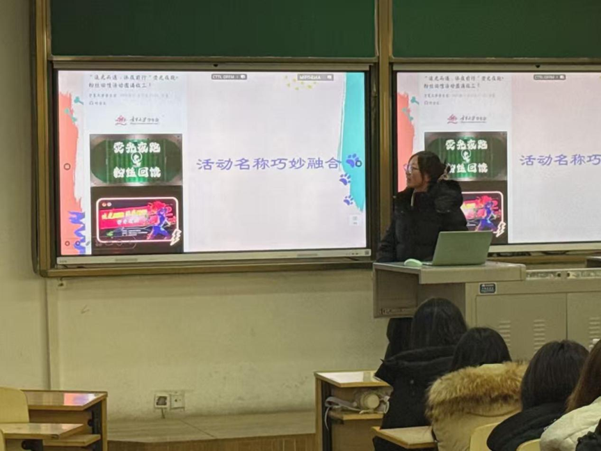 第三部分由宣传部的于佳音讲解了校园生活类推文写稿的小技巧。从拟定抓人眼球的公众号标题,文体选择,到如何增加推文内容的趣味性等方面进行了详细的讲述,并通过举例以往优秀作品来帮助大家更好理解“趣味吸睛”在撰写推文中的具体体现。