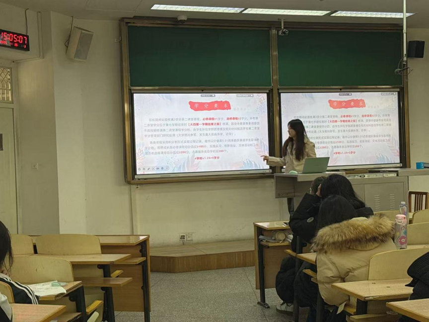第四部分由二课管理服务部的李晓晓围绕“第二课堂”活动申请和发布,活动人员录取及二课学分发放的流程进行讲解。此次讲解为各部门后续的二课活动发布工作可以高效有序的进行奠定了良好的基础。
