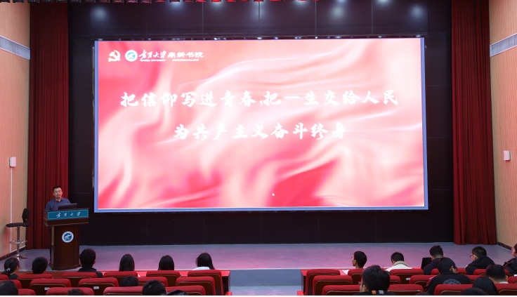 11月11日,鼎新书院分党校举办“把信仰写进青春,把一生交给人民”专题党课。本次党课由书院党委副书记黄旭兴主讲,全体入党积极分子、党员发展对象聆听了党课。